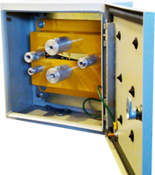 Este dispositivo controla la conducción e inducción en la red eléctrica de descargas atmosféricas y potencial electrostático generado.